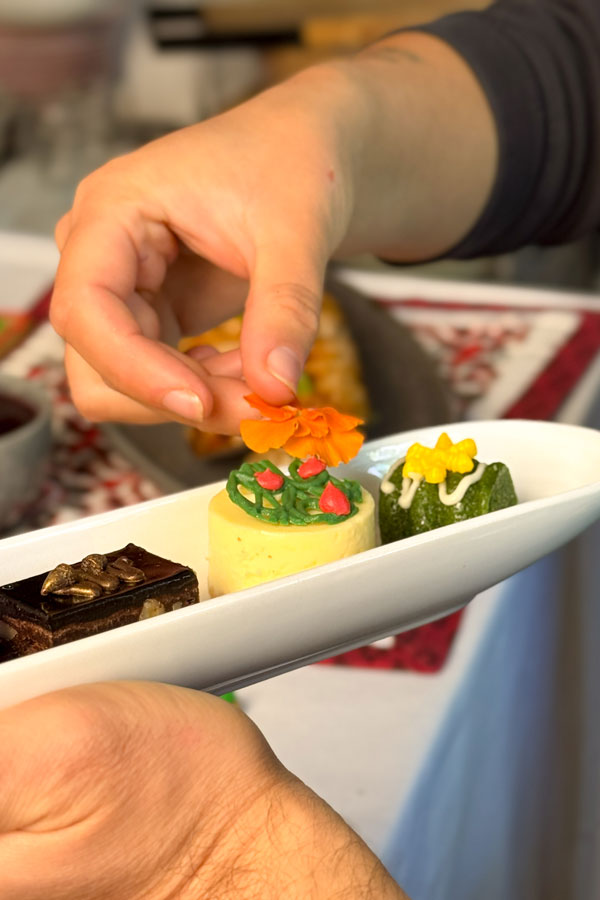 5. Dark Chocolate soil, gold leaf, summer berries, matcha powder